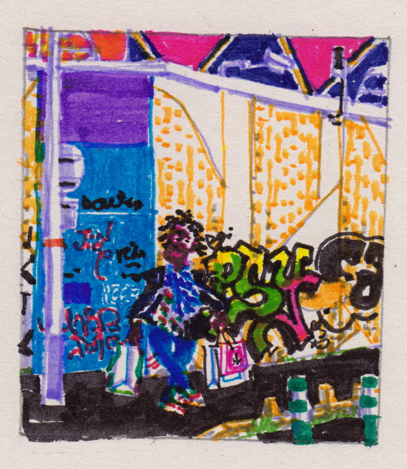 Placid, Rue Keller – fusain 32x41cm, 2004