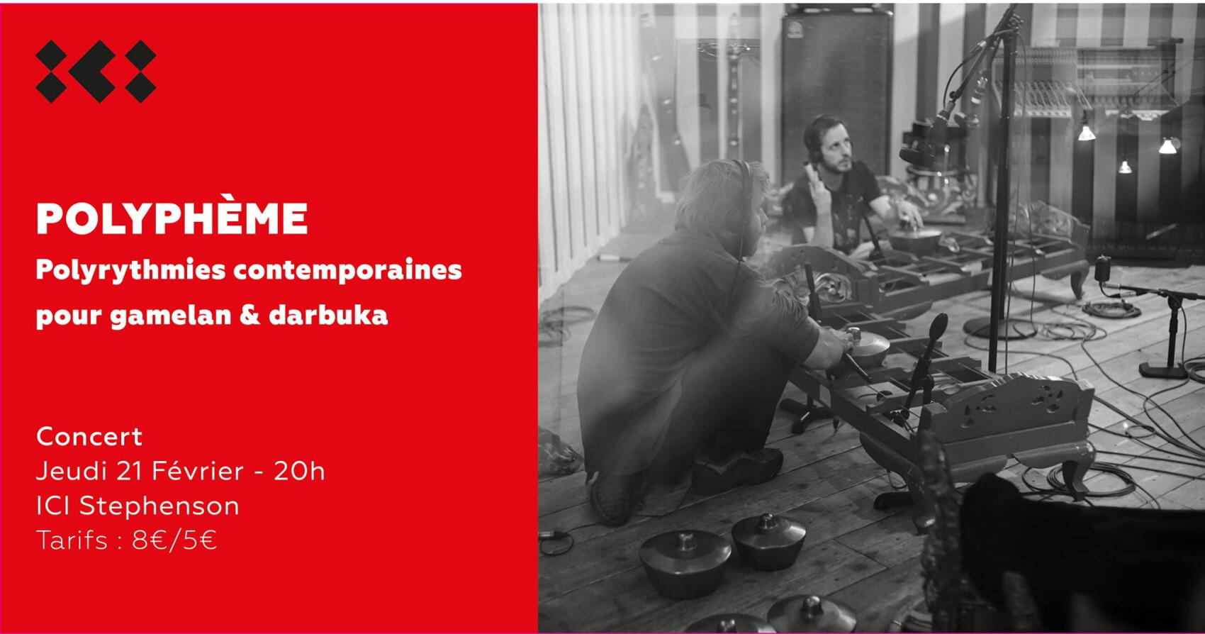 Polyphème : Polyrythmies contemporaines pour gamelan & darbuka || Institut des Cultures d’Islam | 56 rue Stephenson, 75018 Paris || Le jeudi 21 février de 20:00 à 21:00 || Tarif : 8 € / 5 € || Ici la billetterie || Ici l’événement