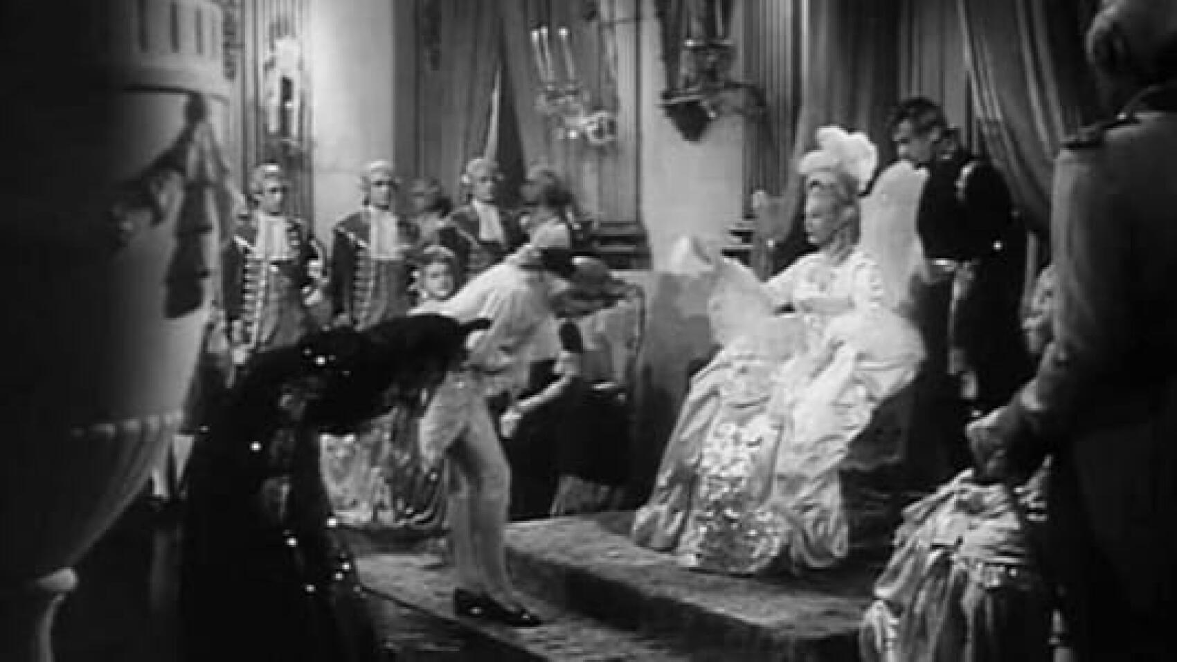 Le second, « Le pirate de Capri » (1949) se passe au 17eme siècle à Naples. Une sorte de pirate, masqué comme Zorro, mais appelé Sirocco, va renverser le traitre Von Holstein, et tomber la reine Carolina, le tout en costume de cape et d’épée, au milieu d’une cour de marquises satinées et poudrées à souhait.
