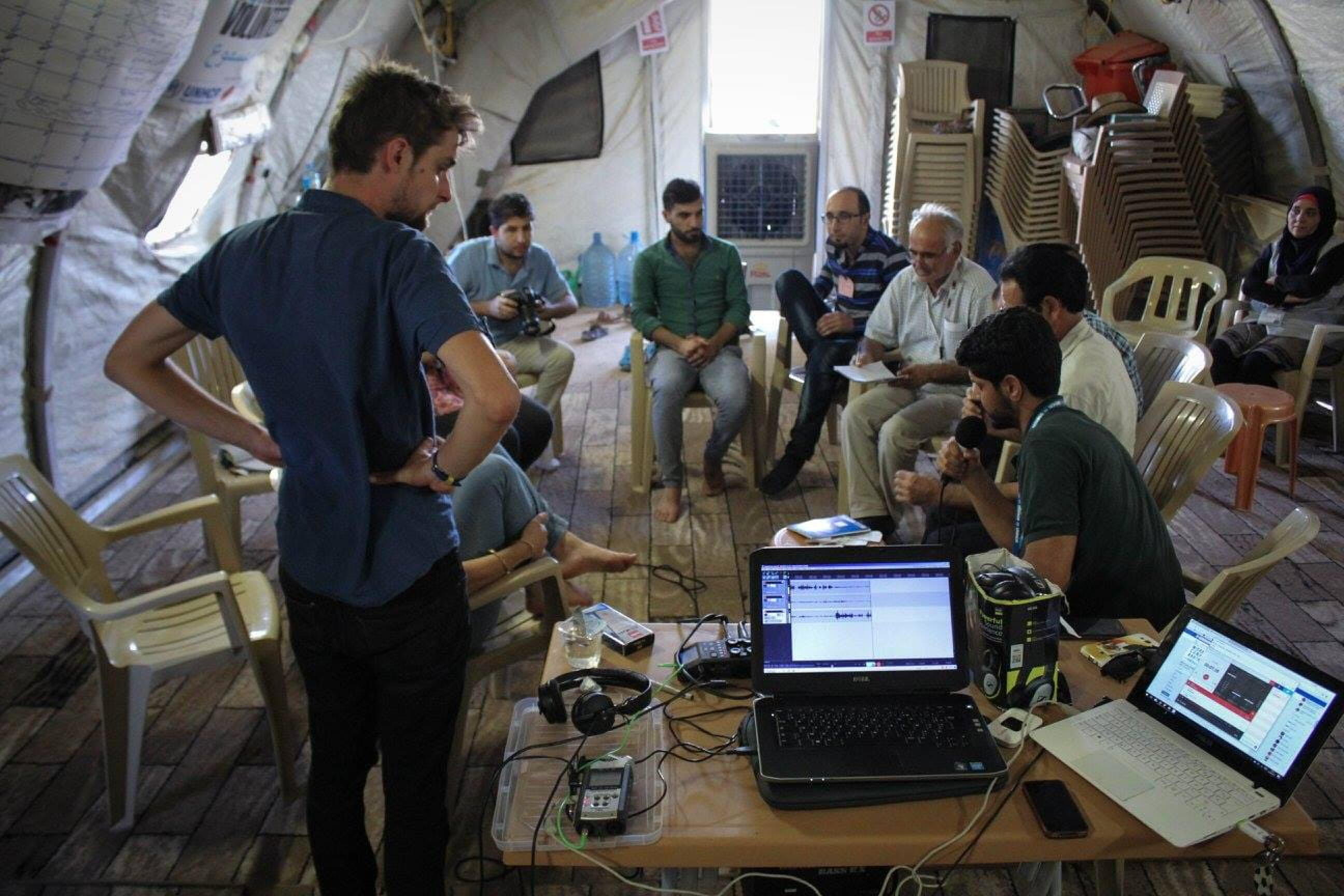 Un avis partagé par Antoine Lalanne-Desmet : « Je m’en fiche si l’émission n’est pas terrible. Le but premier des ateliers, c’est que les gens passent un moment heureux. » Journaliste également, le jeune homme de 28 ans a créé en novembre 2016 l’association Radio Activité, qui organise des ateliers de radio dans les lycées, les prisons, les théâtres… En mai 2017, il met sur les rails, avec Cloé Chastel, le projet MicroCamp. Ensemble, ils organisent des ateliers radio dans les camps de réfugiés, en France et à travers le monde : en Irak, en Géorgie, à Calais…