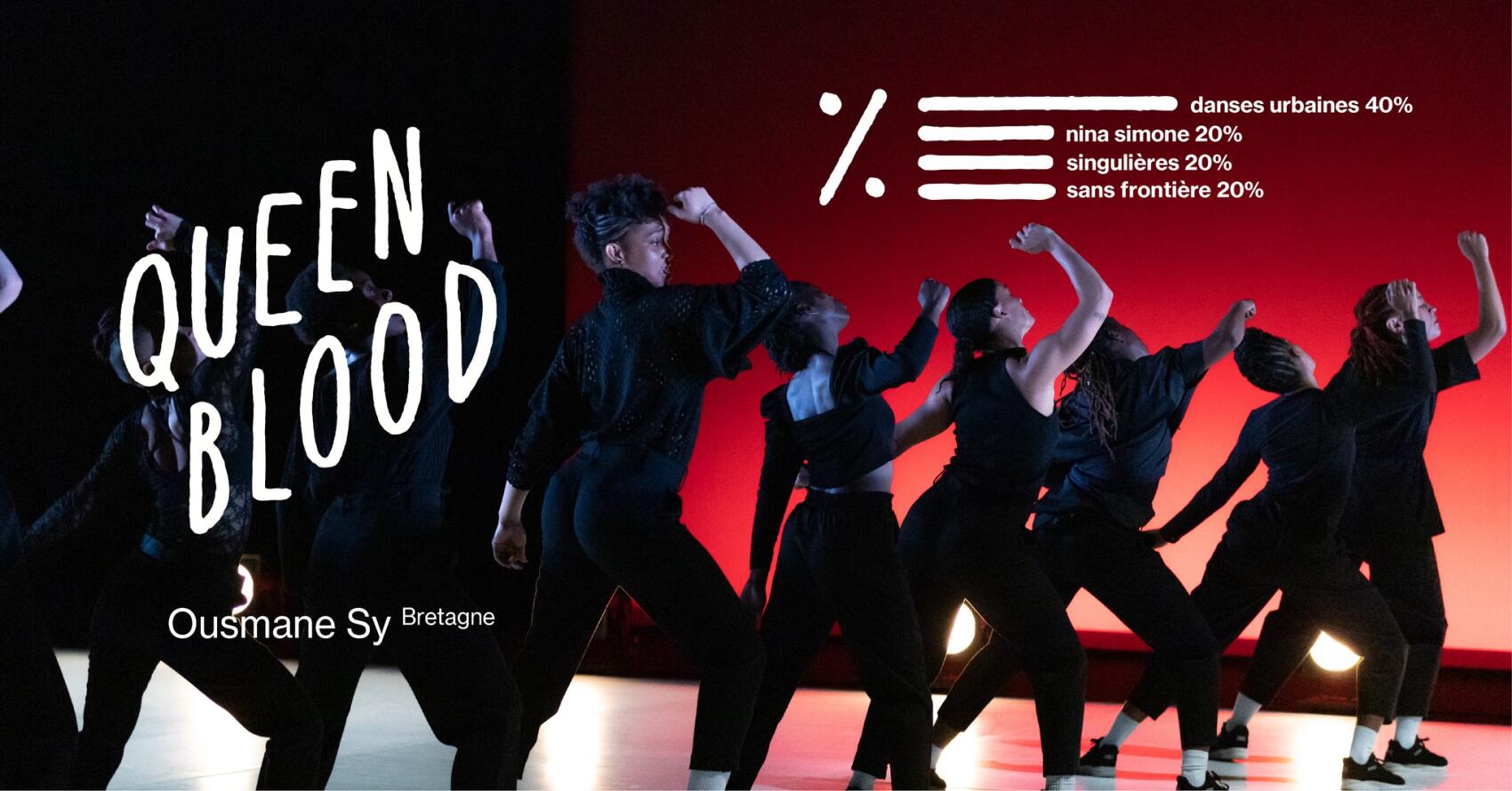 Mélangeant les styles de street dance – locking, popping, hip-hop, krump, dancehall – et les influences africaines, antillaises, Queen Blood questionne, à travers la danse et le mouvement, les différents aspects, fiertés, vicissitudes, du devenir-femme, qu’il soit assumé ou subi, imposé ou hissé en étendard.