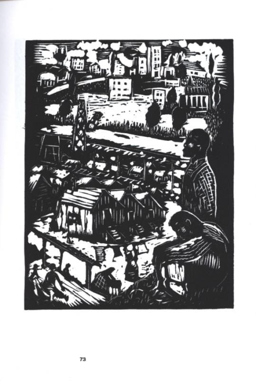En 1935 à Seattle, un militant chinois LIN SHI KHAN ( des centaines d’ouvriers de Chine sont morts pour la construction des lignes de chemin de fer) va exécuter une pile de linogravures sur ce procès infâme, avec son camarade TONY PEREZ. Ils en font un album relié sur toile et l’envoient à NEW MASSES un journal militant…Ce n’est pourtant qu’en 2002 que ce travail sera publié !