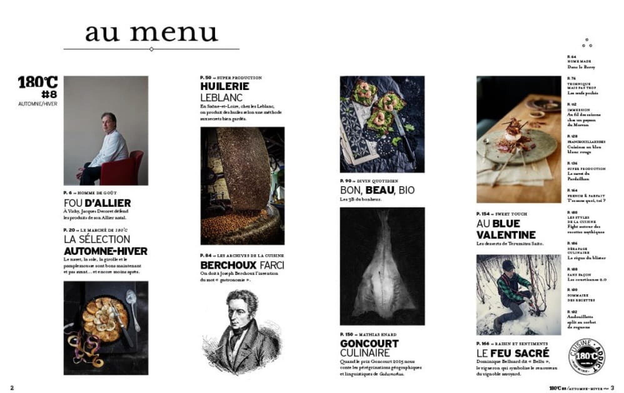 En vrai, je vous recommande vraiment la lecture de 180° qui se lit comme un livre et celle de Mint où j’ai découvert une femme que je veux rencontrer : Ernestine Grasser Hermé, « 37 ans à l’envers », Madame le Président de l’amicale du gras, dont la soeur fait de la coppa maison dans des bas de nylon et qui a la plus belle des philosophies : « Le gras, c’est le goût. Sans gras, il n’y a plus rien. Le gras, ça s’apprivoise avec le temps. »