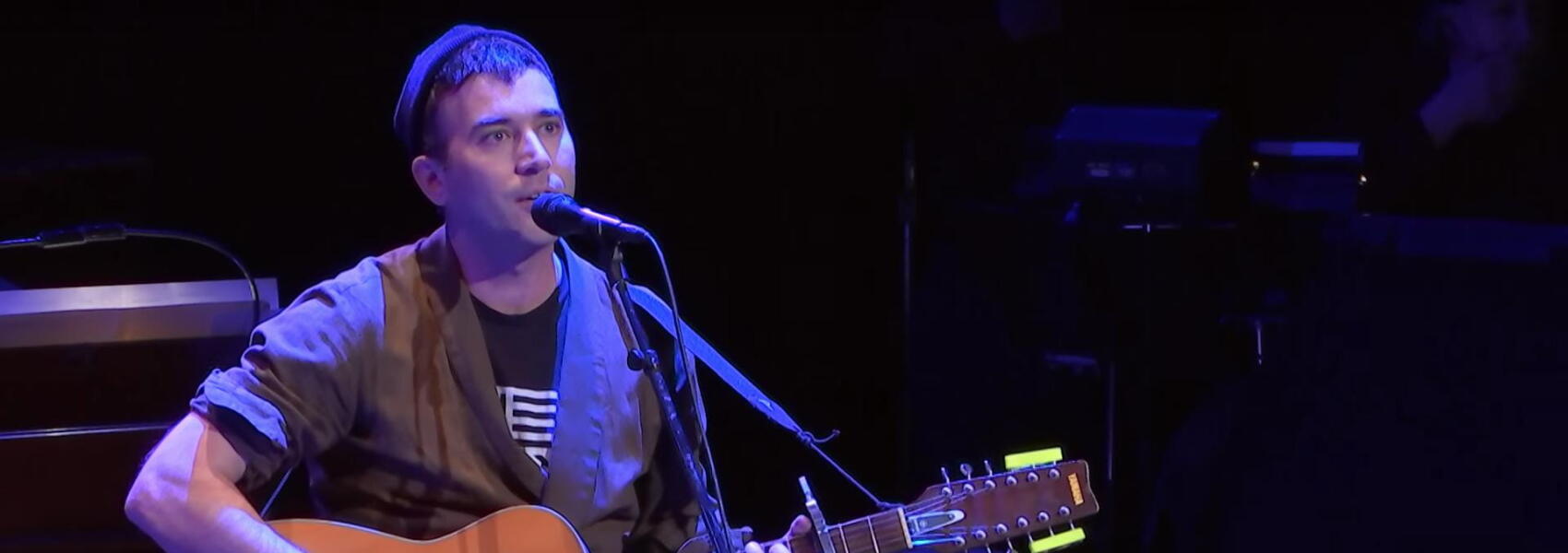 Sufjan Stevens était de passage la semaine dernière dans l’émission américaine Live From Here. On découvre aujourd’hui les images de cet enregistrement. Sur scène, il interprète deux morceaux extraits de la bande originale du film Call Me By Your Name,  « Visions Of Gideon » et « Mystery Of Love » mais aussi « Tonya Harding » et « Heirloom », extrait de son EP, All Delighted People (2010). Et comme toujours, c’est prenant :