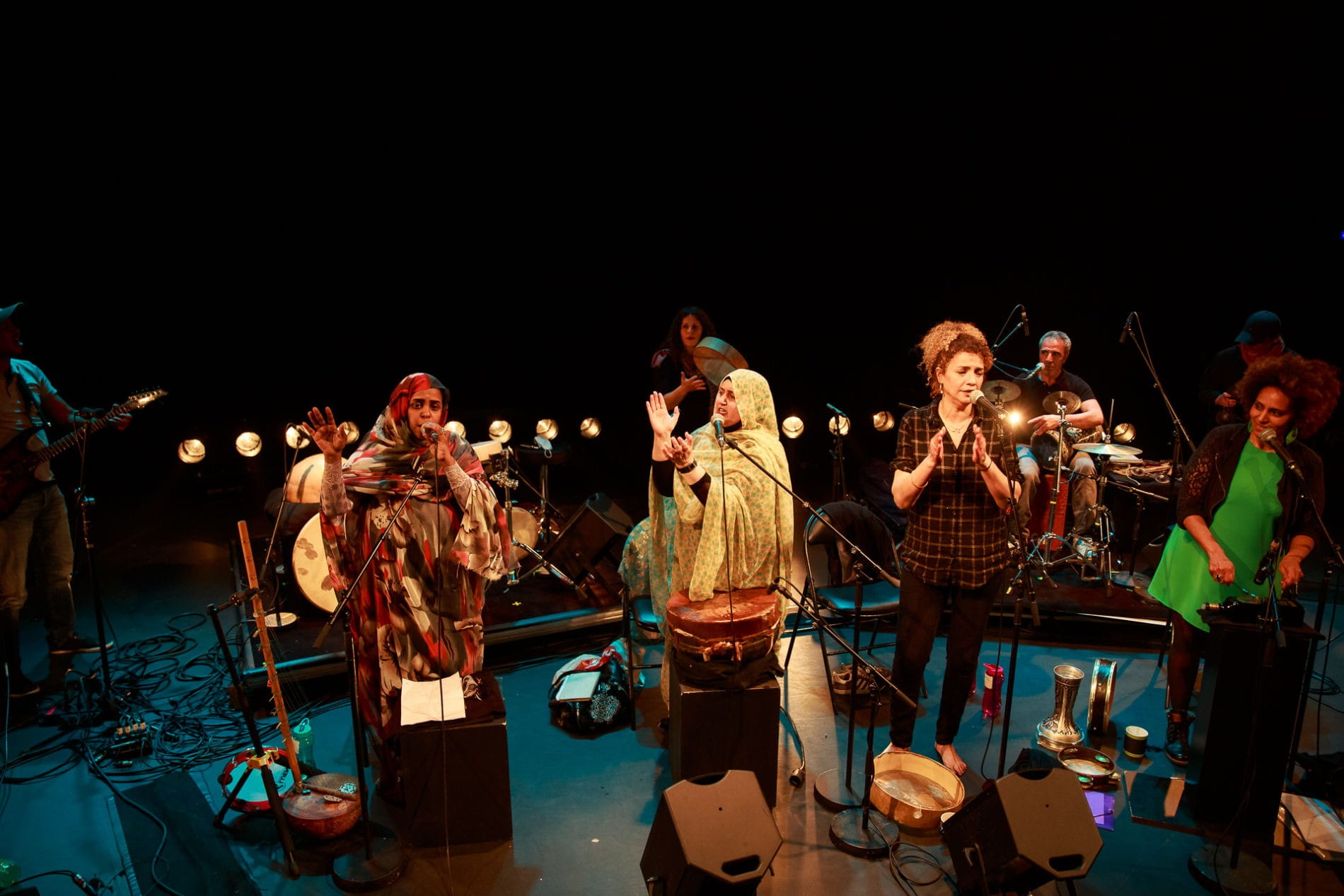 Aujourd’hui dans La Potion, les quatre musiciennes, Noura Mint Seymali, Souad Asla, Dighya Moh Salem et Malika Zarra