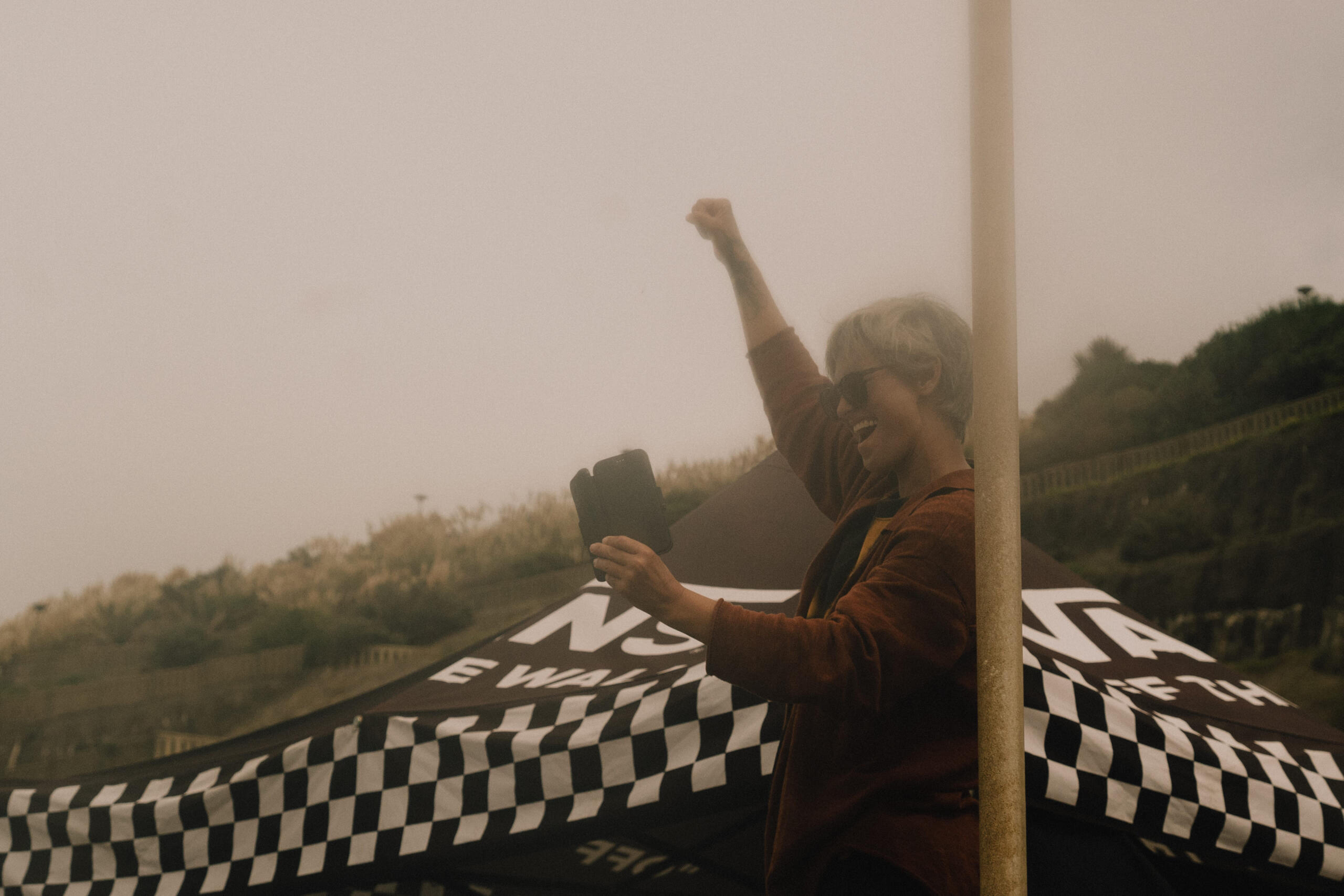 “Je n’ai jamais rencontré une seule autre personne trans, en 10 ans à surfer dans le Nord et dans le Sud-ouest”, raconte Flynn. Ah si, elle se rappelle la venue de l’Australienne Sasha Jane Lowerson, l’année dernière au Queen Classic. Sasha est à ce jour la seule surfeuse trans à avoir remporté les championnats de longboard dans son pays, non sans affoler la surfosphère, criant à de prétendus “avantages biologiques”, utilisés pour remettre en question son identité féminine. Alors surfer en équipe, entourée de personne queer “donne de la force”, lâche Flynn dans un sourire, qui laisse entrevoir le diam’s rose scintillant, collé sur une de ses canines. “Et on progresse beaucoup plus vite, on s’encourage. Ça change tout. »