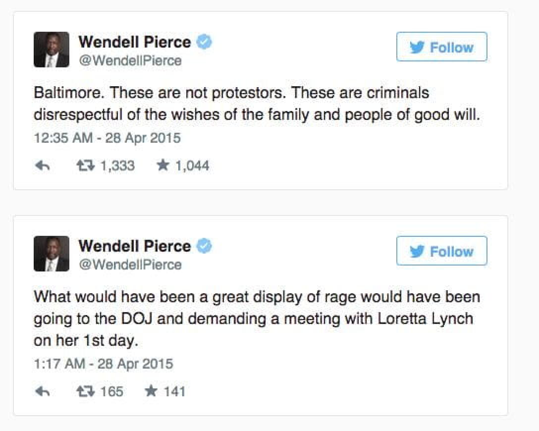 Bunk Moreland quant à lui nous demande de ne pas confondre les criminels avec les manifestants – et, lui qui connait bien les rouages de la politique, en appelle à la ministre de la justice Loretta Lynch, plutôt qu’à la violence dans les rues.