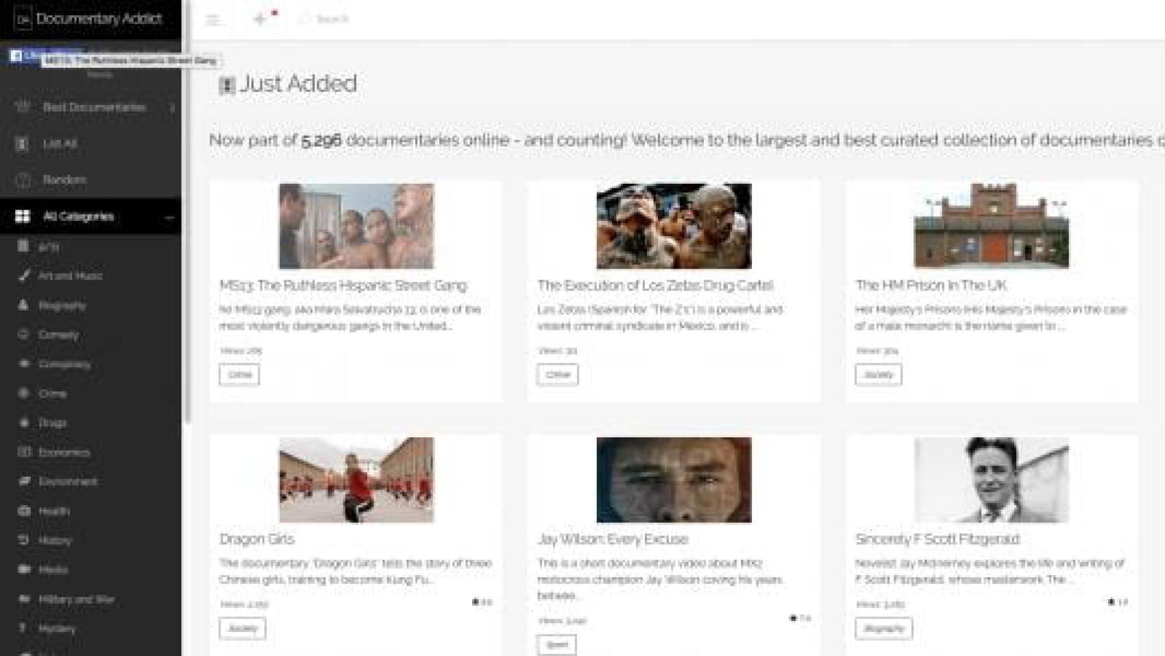 Le prochain dimanche où vous ne savez pas quoi faire, allez donc faire un tour sur Documentary Addict, un site (en anglais) qui rassemble un large nombre de documentaires, avec un peu plus de 5 000 vidéos disponibles gratuitement, souvent hébergées sur YouTube ou Viméo. Et, contrairement aux services de replay des télévisions françaises, leur disponibilité n’est pas limitée dans le temps.