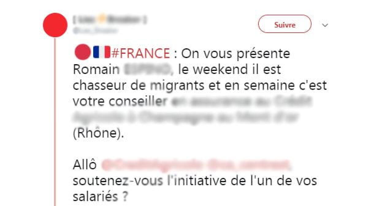 Génération Identitaire a déclaré avoir fait faire demi-tour à quatre personnes et pour preuve, le porte-parole de la bande, Romain Espino, a posté sur Facebook la photo d’un homme de dos au bord d’une route, accompagnée d’un « Au revoir et ne reviens plus ! » qui a mis le feu à Twitter.