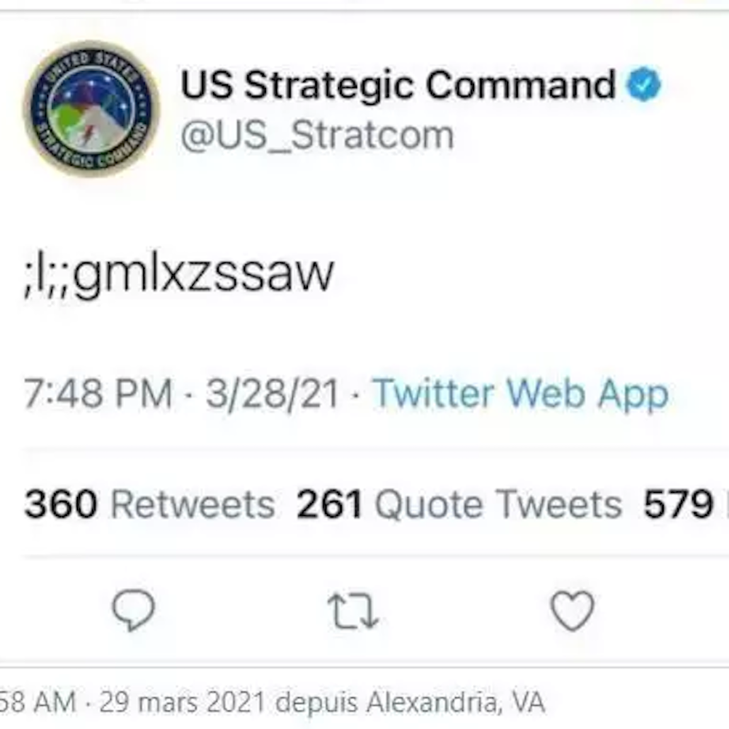 Le commandement stratégique de l’armée américaine a tweeté quelque chose. Ce commandement, cette branche de l’armée est chargée du contrôle militaire de l’ensemble de l’arsenal nucléaire américain a donc tweeté : « ;l;;gmlxzssaw, ». Une succession de lettres et de ponctuations. Code nucléaire ? Piratage du Pentagone ? Complot ? S’agit-il d’un ordre d’attaque ?
