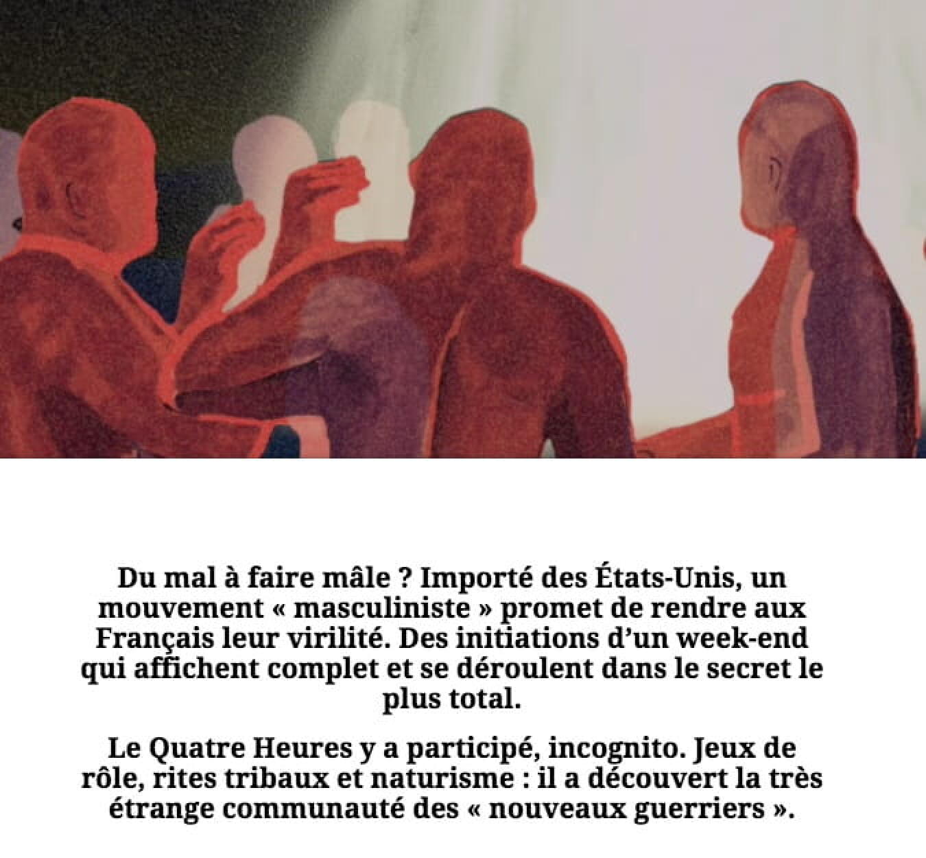 C’était un week-end pour rendre aux hommes leur virilité, idée toute droit issue de la tendance masculiniste importée des États-Unis. Le nom seul de l’événement est éloquent :  l’aventure initiatique du nouveau guerrier.