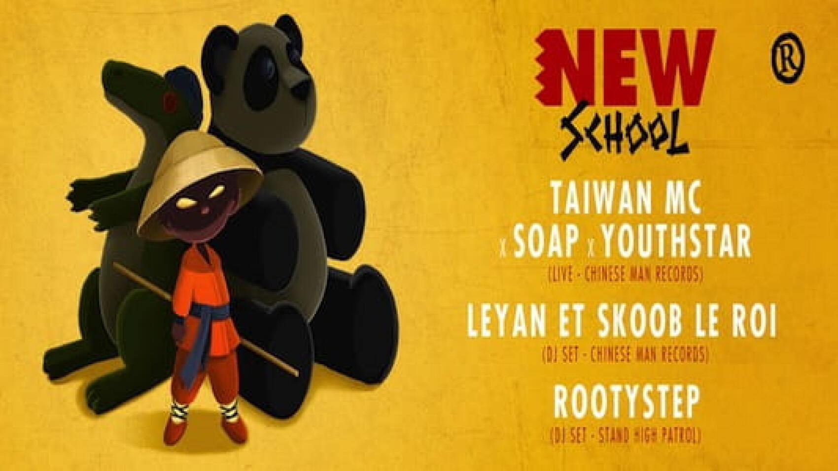 Après une tournée française & européenne, TAIWAN MC revient sur Paris pour une date à domicile ! Il sera bien sûr accompagné par SON OF A PITCH aka SOAP, beatmaker incontournable et producteur de l’excellent Diskodub. YOUTHSTAR sera là aussi, le rappeur & MC drum & bass anglais, ex-Dirtyphonics, maintenant au micro pour Chinese Man rejoindra son compère Taiwan MC sur scène pour un live encore plus fou… A cette occasion, NEWSCHOOL a laissé quartier libre au MC et à son label CHINESE MAN RECORDS :