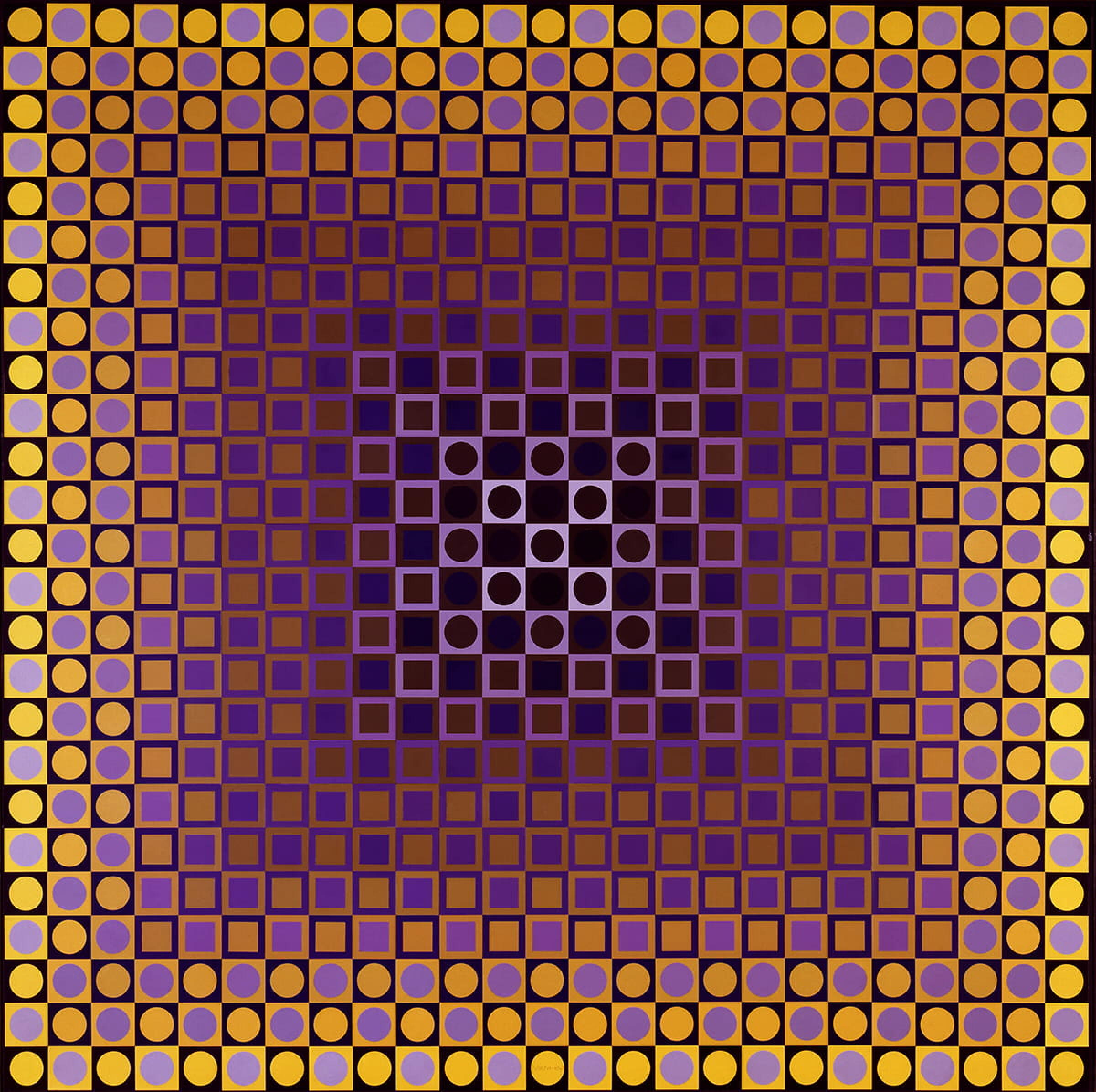 Les commandes de grosses entreprises, ou même des commandes d’État, permettent à Vasarely de créer une fondation, reconnue en 1971. Avec un musée à Gordes, un centre architectonique à Aix-en-Provence, et deux musées en Hongrie : à Pécs dans les années 70 et à Budapest dans les années 80. Ses expositions, au cours des années 60 et 70, présentent des toiles, puis des sérigraphies aux tons de plus en plus raffinés, simulant des cubes, des cibles, puis des sphères en perspective dont les parois bombées semblent en volume, par l’illusion des formes et des couleurs qui paraissent avancer ou reculer, créant une fausse perspective.