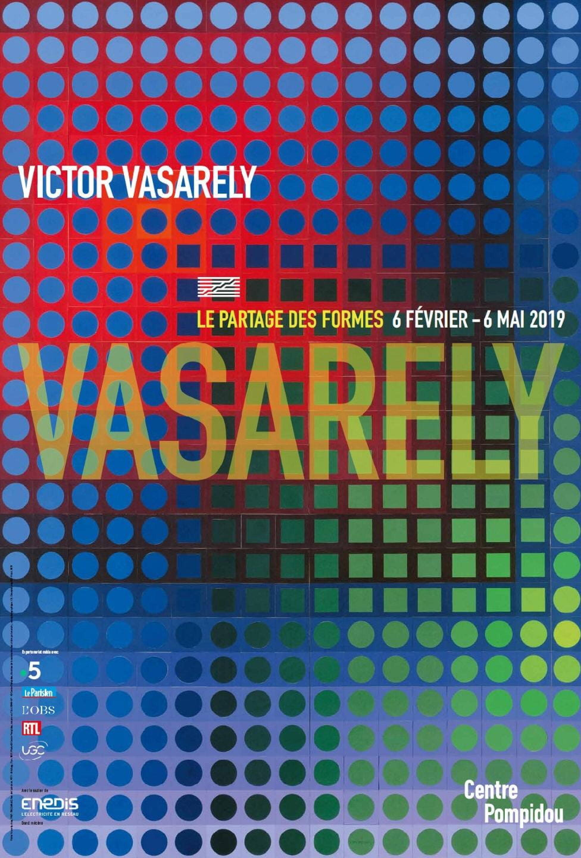 Vasarely. Le partage des formes. Exposition au Centre Pompidou. Du 6 février au 6 mai 2019. 300 œuvres, objets et documents sur toutes les époques du peintre (il existe d’autres artistes optiques comme François Morellet, Julio Le Parc, et quelques étrangers, dont certains vont s’orienter vers l’Art Cinétique, également basé sur des illusions optiques, mais en mouvement , à l’aide de petits moteurs électriques ou d’ articulations qui font « bouger » les éléments des œuvres…)