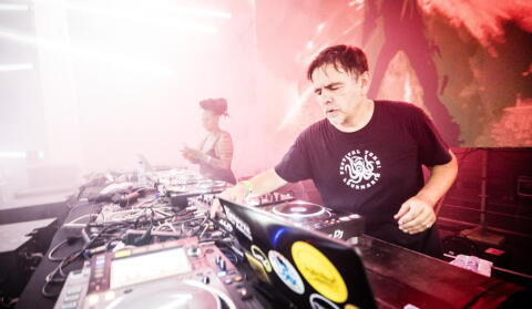 C’est au centre d’un gymnase industriel aux poutres métalliques et aux briques (vous l’aurez compris) rouges que se dresse une scène à 360° chargée de synthés, modulaires et autres machines. Le duo Encore démarre son live qui emprunte à la techno pour livrer une performance hypnotique et addictive. Un rythme effréné s’installe au centre d’un public alors plongé en trans.
