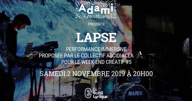 À l’occasion de ce week-end bourdonnant de génie, le collectif Ascidiacea vous présentera le samedi 2 novembre de 20h00 à 21h00 dans la salle 360 la performance audiovisuelle Lapse, trois séquences d’évolution rythmique, mélodique et narrative.