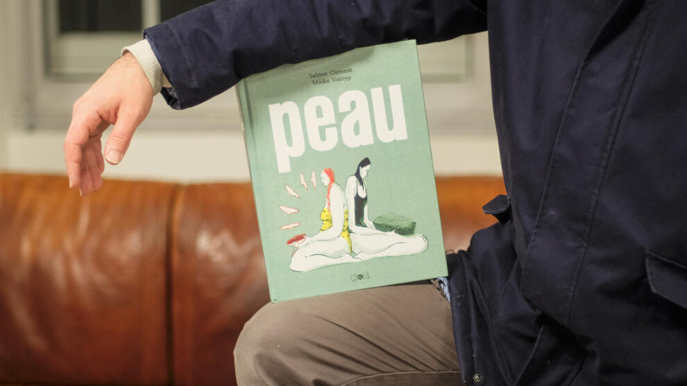 Mais il se réconforte avec la BD 𝘗𝘦𝘢𝘶 de Sabien Clement et Mieke Versyp,.