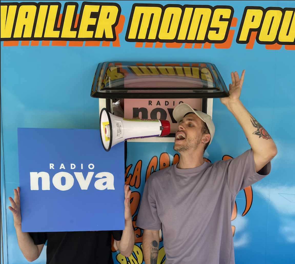 Le camping-car enflammé de Radio Nova se pose à Vence sur La Place du Grand Jardin.